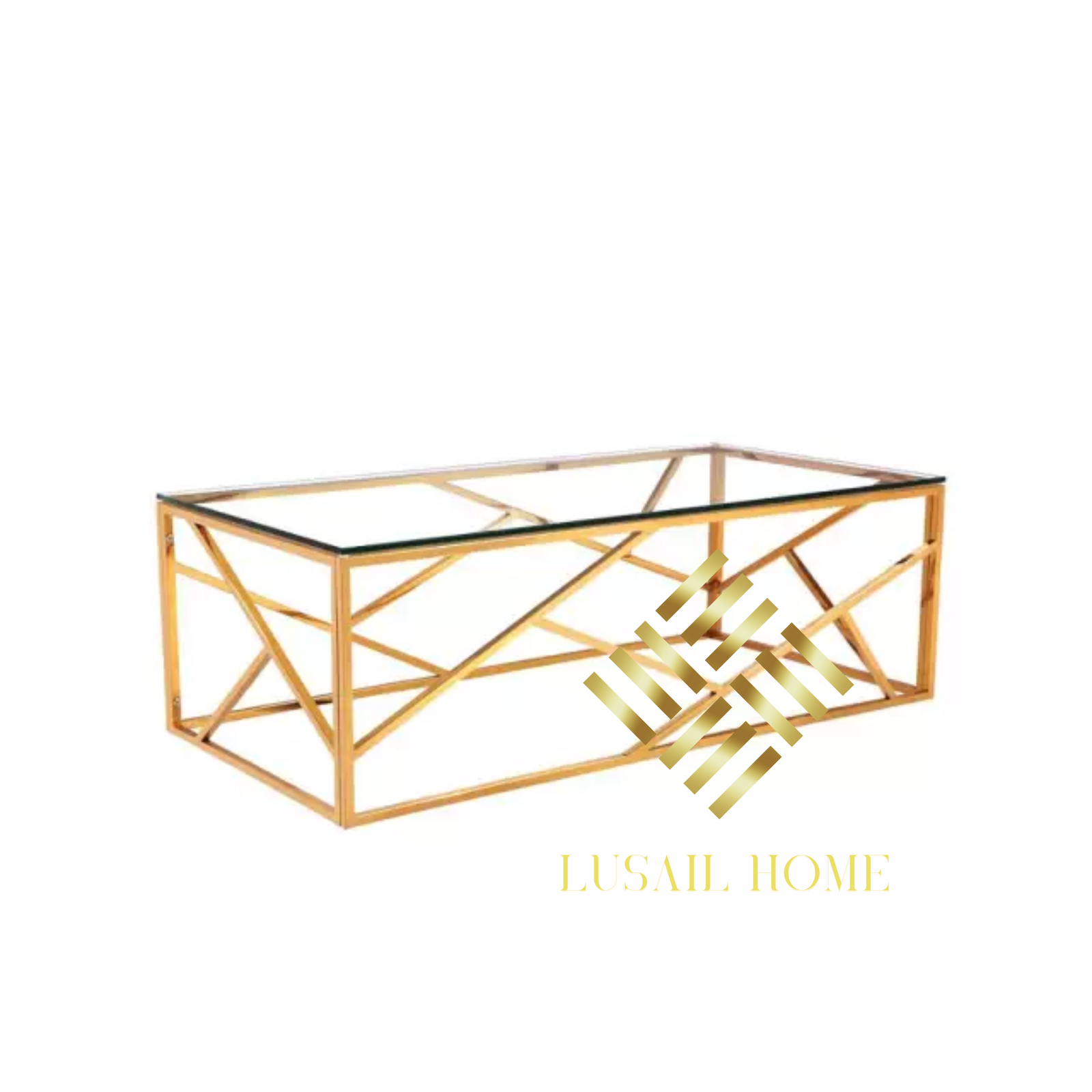 طاولة وسط معدن وجه زجاج قياس 110*70