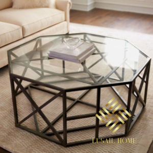 طاولة وسط معدن وجه زجاج قياس 110*70