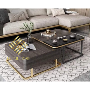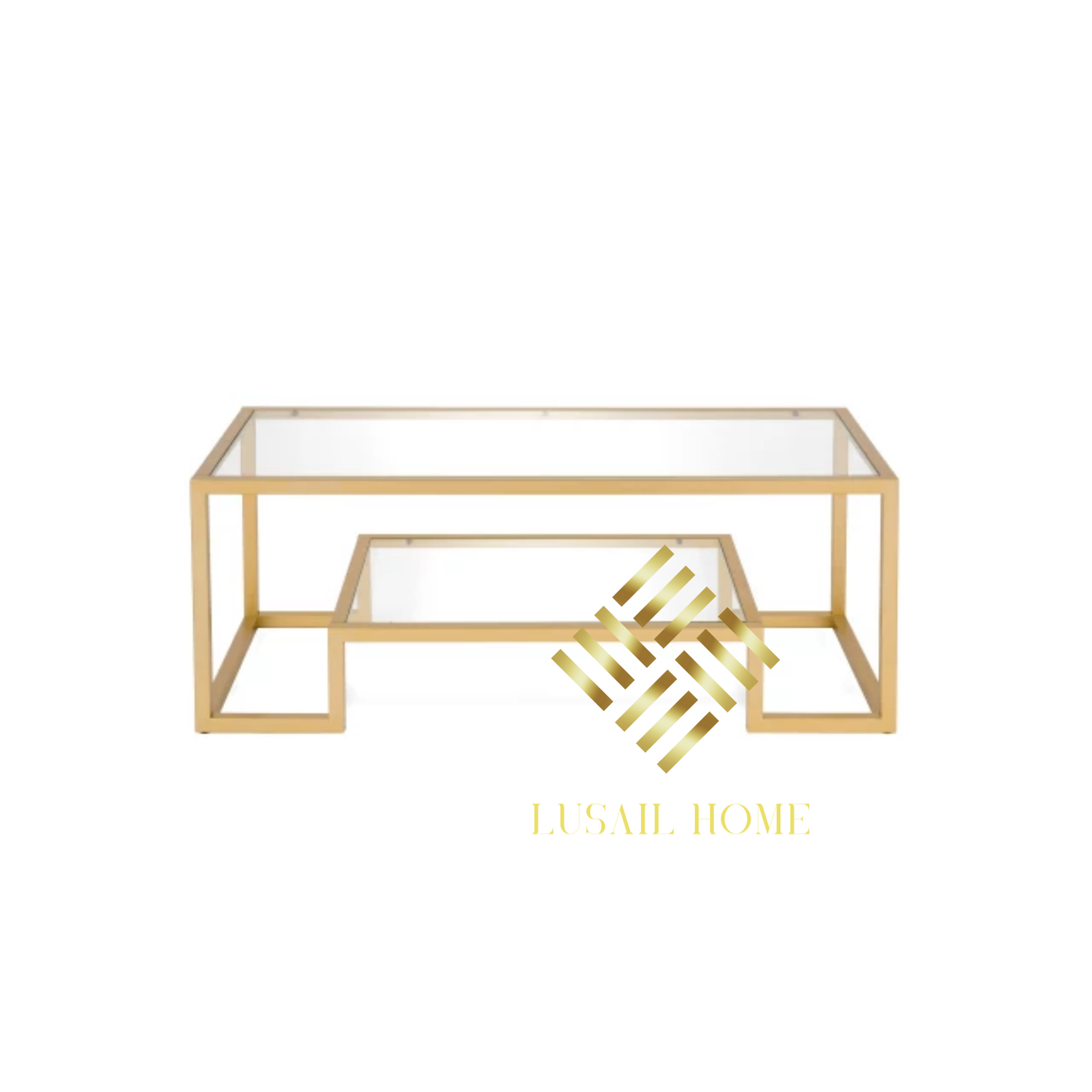 طاولة وسط طابقين معدن وجه زجاج قياس 110*70