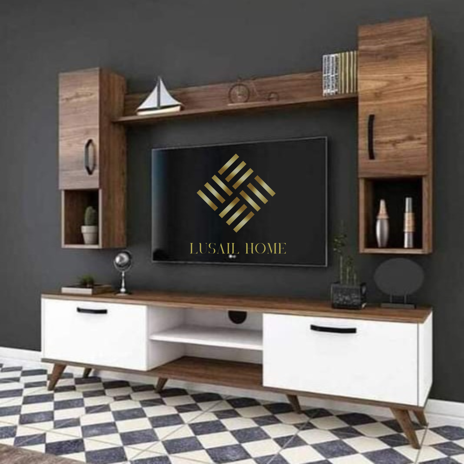 فوق التلفزيون اليبكسات يمين و يسار عرض 20 سم إرتفاع 80 سم غمق 20 سم